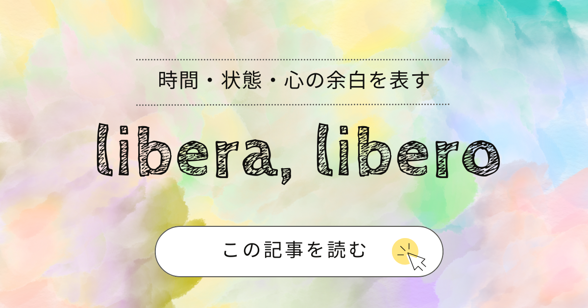 束縛・予定・障害がないことは、単なる空白ではなく「可能性が開いている状態」として感じられる。そのため libero は、時間・場所・心の状態すべてに使われ、「余白」や「呼吸できる感じ」を含む。